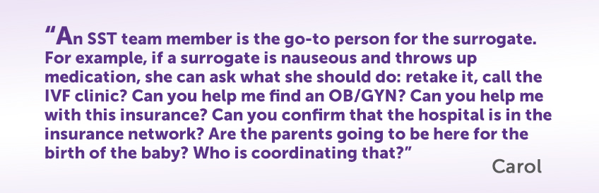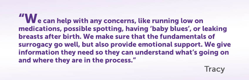 - Makes the surrogate feel at ease by providing her with the assistance she needs at any given time